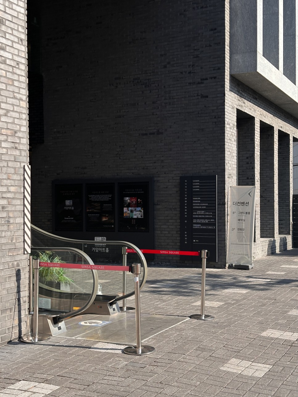 더컨벤션 신사 입간판이 보입니다.